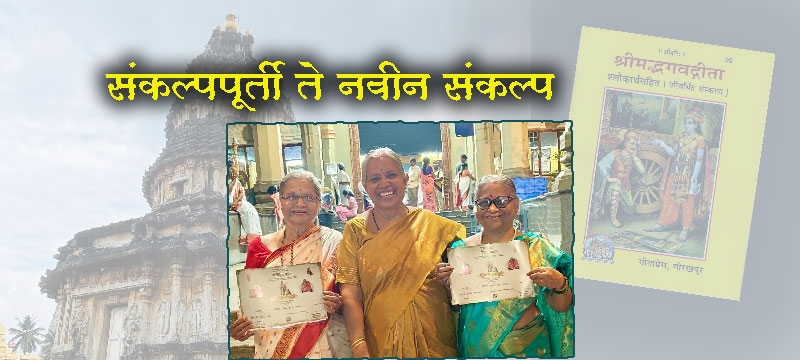 एखादा संकल्प पूर्ण केल्यावर त्या आनंदात असतानाच नवीन संकल्प करण्याचा निर्धार करणे, हे तो आनंद वर्धिष्णू करणारे आणि अधिक वाढविणारेच असते, हा अनुभव सध्या मी घेत आहे. नुकताच मी शृंगेरी येथे जाऊन कंठस्थ गीतापठणात प्रथम क्रमांक मिळविला आहे. हा माझा जीवन संकल्प होता. परमपूजनीय शंकराचार्यांच्या हस्ते आपण पुरस्कार घ्यायचा, हा माझा जीवननिर्धार होता. पुरस्कार घेतल्यानंतरच नागपूरला आल्यावर मी ठरविले की, फक्त आपणच हा पुरस्कार घेऊ नये, तर नागपुरातील किमान 21 भगिनींना हा पुरस्कार प्राप्त करण्यासाठी प्रोत्साहित करायचे, त्यांच्यासाठी गीता वर्ग घ्यायचे आणि ते कंठस्थ वर्ग सुरू झाले आहेत.