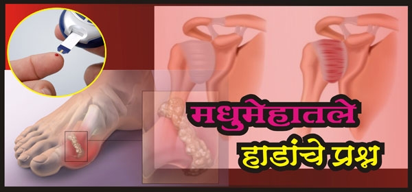 मधुमेह झाल्यावर अधिक प्रमाणात दिसणारे गुडघेदुखीसारखे सांध्यांचे काही विकारदेखील आहेत. या सगळया गोष्टींनी जिवावर बेतण्याची शक्यता नसली, तरी रोजचं जीवन बरंच दुरापास्त आणि दुखण्याने भरलेलं होतं, यात शंका नाही. म्हणूनच मधुमेहातल्या हाडांच्या आणि सांध्यांच्या प्रश्नांकडे पाहिलं गेलं पाहिजे. दुर्लक्षित असे हे हाडांचे आणि सांध्यांचे प्रश्न इतर लोकांमध्येही दिसतात. मधुमेहींसाठी त्यांचा वेगळा विचार केला जात नाही. आणि दुर्दैवाने मधुमेहींना या दुखण्यांचा सामना करावा लागतो.