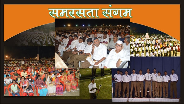 नवीन जालन्यातील बाजार समितीच्या समोरच्या भागातील देऊळगावराजा ते भोकरदन वळण रस्त्याच्या राजूर चौफुलीजवळच्या वीस एकर परिसरात समरसता संगम सभेला अलोट गर्दी होती. अतिशय शिस्तबद्ध रचनेत पंचवीस हजार खुर्च्यांवर नागरिकांच्या बसण्याची व्यवस्था करण्यात आली होती.