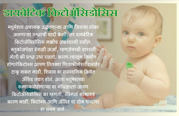 यासाठी पालकांनी सजग राहणं हा एक उत्तम मार्ग आहे. कालपर्यंत अंथरूण ओलं न करणारा बबडया किंवा छकुली आज अचानक ते करायला लागला/लागली अथवा बाळसेदार मुलं व्यवस्थित खात असूनदेखील त्यांचं वजन अकस्मात कमी व्हायला लागलं, तर त्यांचं रक्तातली ग्लुकोज तपासून घ्या. ह्यां, इतक्या लहान मुलाला कसं काय होईल, तो वा ती नाटक करते, अभ्यास करायला नको म्हणून सारखं लघवीला जाते असं न समजता त्यांना डॉक्टरकडे न्या. फार तर काय होईल, त्यांना काहीच न झाल्याचं समजेल, थोडेसे पैसे फुकट जातील. पण निदान त्यांचं निदान लांबणीवर पडणार नाही. किटोऍसिडोसिस झाल्यावर निदान होणं हे खरंच दुर्दैवी आहे. त्यात मृत्यू होण्याचं प्रमाण बरंच जास्त आहे.