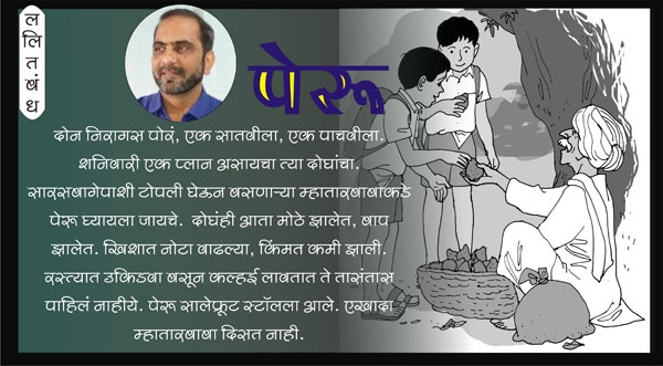 दोन निरागस पोरं, एक सातवीला, एक पाचवीला. शनिवारी एक प्लान असायचा त्या दोघांचा. सारसबागेपाशी टोपली घेऊन बसणाऱ्या म्हातारबाबाकडे पेरू घ्यायला जायचे. दोघंही आता मोठे झालेत, बाप झालेत. खिशात नोटा वाढल्या, किंमत कमी झाली.रस्त्यात उकिडवा बसून कल्हई लावतात ते तासंतास पाहिलं नाहीये. पेरू साले फ्रूट स्टॉलला आले. एखादा म्हातारबाबा दिसत नाही. कुठलाही आरडाओरडा न करता तो पांढऱ्या मिशात कौतुकाने हसायचा तसा हसत नाही.