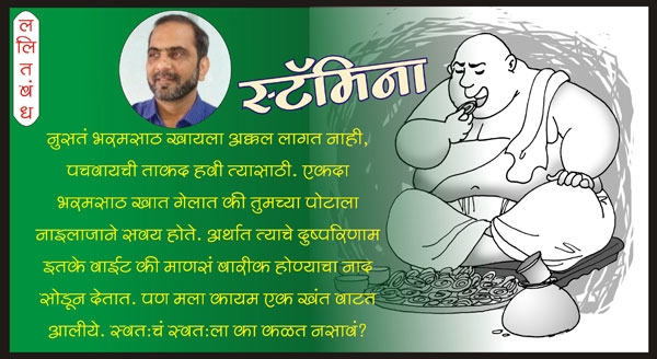 नुसतं आडमाप खाणं म्हणजे स्टॅमिना नव्हे, ते पचवण्याची ताकद असणं म्हणजे स्टॅमिना. कळेल तेव्हा कळेल, आपल्याला काय करायचंय म्हणा!