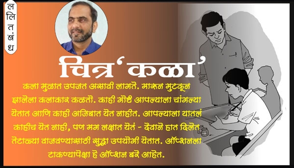 कला मुळात उपजत असावी लागते. मारून मुटकून झालेला कलाकार कळतो. काही गोष्टी आपल्याला चांगल्या येतात आणि काही अजिबात येत नाहीत. आपल्याला यातलं काहीच येत नाही, पण मग लक्षात येतं - देवाने हात दिलेत ते टाळया वाजवण्यासाठीसुध्दा उपयोगी येतात. ऑॅप्शनला टाकण्यापेक्षा हे ऑॅप्शन बरे आहेत.