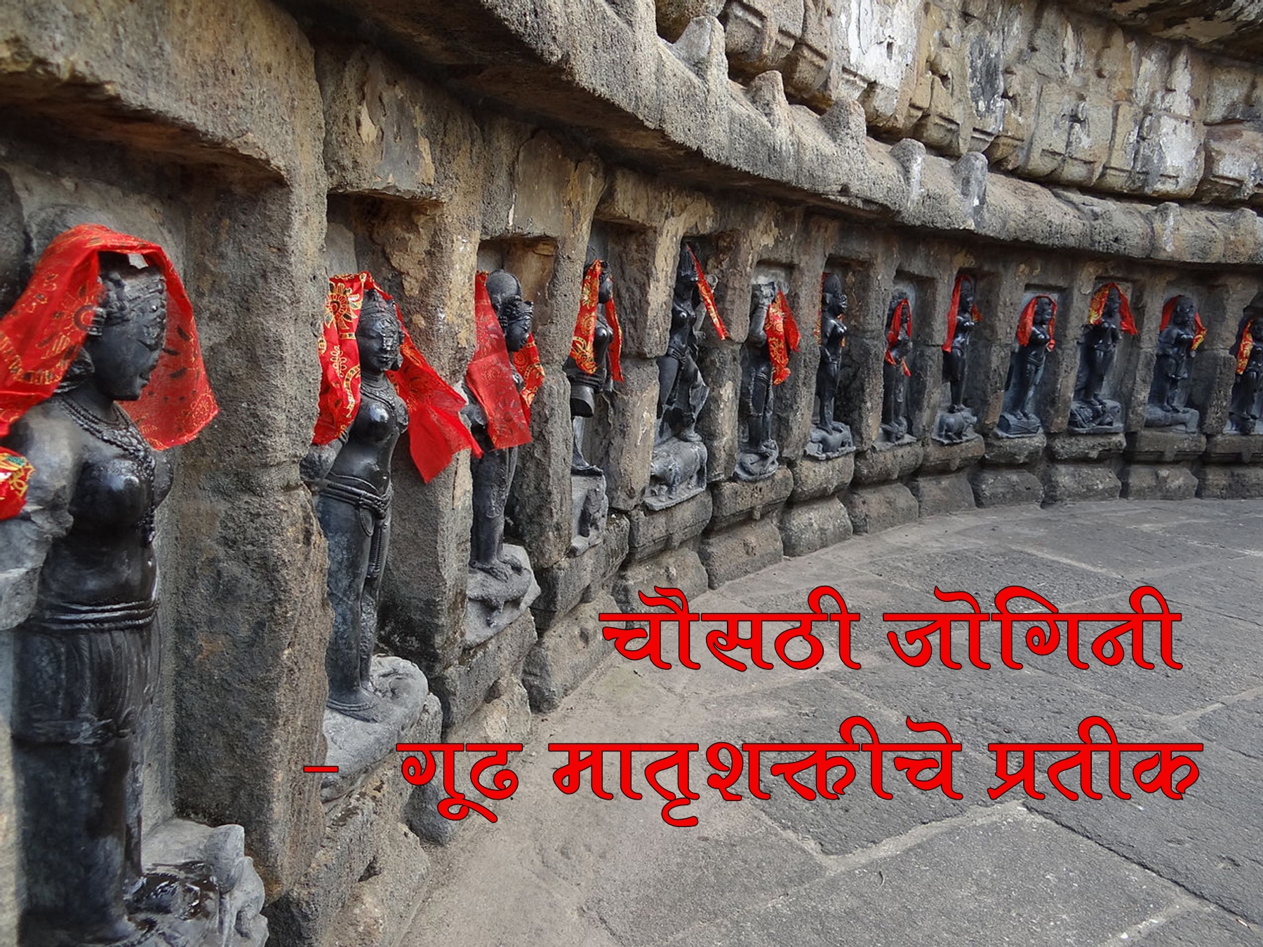 हे मीही वाचले होतेच. विद्या दाहेजिया ह्या संशोधिकेने त्यांच्या 'Yogini Cult And Temples : A Tentric Tradition' या पुस्तकात योगिनी मंदिरांबद्दल, तिथल्या शिल्पांबद्दल आणि ह्या मंदिरांमधून चालणाऱ्या उपासनांबद्दल खूप संशोधन करून विस्तृतपणे लिहिलेय. त्यांनीही ह्या मंदिरांमधून चालणाऱ्या तांत्रिक उपासनांचा उल्लेख केलाय. ह्या चौसष्ट योगिनी म्हणजे शाक्त संप्रदायाच्या देवता. रक्तबीज दैत्याच्या निर्दालनासाठी देवीने युध्द केले, पण त्या दैत्याला असा वर होता की त्याच्या रक्ताचा एक थेंबही जमिनीवर सांडला तर त्यातून नवीन दैत्य निर्माण होईल. तेव्हा त्याचे रक्त पिण्यासाठी म्हणून देवीने चौसष्ट देवता निर्माण केल्या व त्यांच्या साथीने रक्तबीजाचा वध केला, अशी पुराणकथा आहे.