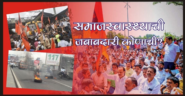 मागील काही दिवसांपासून महाराष्ट्रात मराठा आरक्षण आंदोलन चालू आहे. या आंदोलनात समाजविघातक प्रवृत्तींचा शिरकाव झाला आहे का, अशी शंका येण्याइतपत आंदोलन हिंसक आणि आक्रमक झाले आहे. गेल्या दोन वर्षांत मराठा मूक मोर्चांच्या माध्यमातून मराठा समाजाने जो लौकिक मिळवला होता, तो या हिंसाचारामुळे धुळीला मिळत आहे. गेल्या महिन्यापासून सुरू असणारे आंदोलन मुख्यमंत्र्यांच्या विनंतीनंतरही थांबवत नाही, आरक्षणाचा प्रश्न न्यायालयात आहे, मुख्यमंत्री आरक्षणाच्या भूमिकेवर ठाम आहेत... असे असतानाही मुद्दामहून आंदोलन चिघळवण्याची खेळी कोण खेळत आहे? आणि या खेळीमुळे बिघडलेल्या समाजस्वास्थ्याची जबाबदारी कोणाची? असे प्रश्न आज सर्वसामान्य जनतेला पडले आहेत. मराठा समाजाला कधीतरी यांची उत्तरे द्यावीच लागतील.