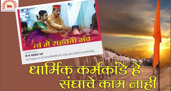 सुमेध आणि दीपाली यांच्या विवाहाचा लेख विवेकमध्ये प्रकाशित झाल्यानंतर काही जणांचा असा समज झाला की, जर असे विवाह होत गेले तर हिंदू धर्म रसातळाला जाईल. विवेक संघाचे, म्हणून अशा विषयांना संघाची मान्यता आहे का? अशी चर्चा काही जणांनी सुरू केली. त्या सर्वांसाठी सांगणे आहे की, संघाचे काम धार्मिक कर्मकाडांचे संरक्षण करण्याचे नाही. डॉ. हेडगेवार प्रवासात सांगली येथे गेले असता तेथील कर्मठ ब्राह्मणांनी त्यांना प्रश्न विचारला, ''तुमच्या संघात गोपाळकाला आहे, सर्व जातीतील लोक एकत्र जेवतात, यातून धर्माचे रक्षण कसे होणार?'' डॉक्टरांनी उत्तर दिले, ''संघाचे काम धर्मरक्षणाचे आहे.'' असे वचन आहे - 'धर्मो रक्षति, रक्षितः' - जो धर्माचे रक्षण करतो त्याचे धर्म रक्षण करतो.