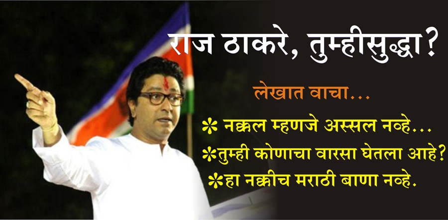 राज ठाकरे, मराठी माणसाने तुमच्यात बाळासाहेब पाहिले. त्यामुळे तुम्ही मनसेची सुरुवात केल्यानंतर बाळासाहेबांचा वारसा तुमच्याकडेच येणार, असे मराठी मनाला वाटले. निवडणुका आल्या, मराठी माणूस तुमच्या मागे उभा राहिला. पहिल्याच झपाटयात तुम्ही महाराष्ट्र विधानसभेत प्रवेश केला, आणि नाशिकची महानगरपालिका तुमच्या हातात आली. शिवसेनेचा वारसा तुमच्या हाती येणार, असे वातावरण होत असतानाच...