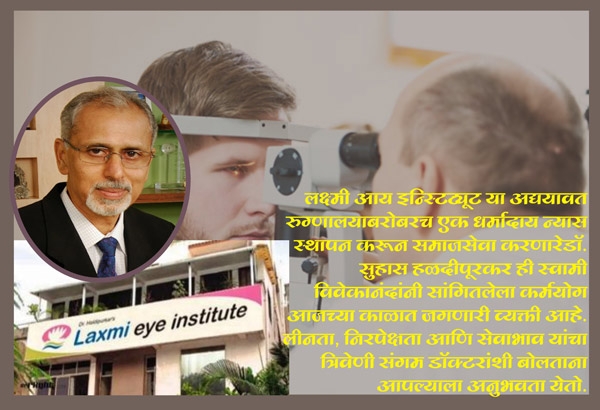 डॉ. सुहास हळदीपूरकर यांच्याबाबतीत वरील विधाने लागू आहेत. डॉ. हळदीपूरकर आज देशात नेत्रतज्ज्ञ म्हणून प्रसिध्द आहेत. देशविदेशातून अनेक डॉक्टर प्रशिक्षणासाठी हळदीपूरकराकडे येतात आणि 'फेको' तंत्र शिकतात. लक्ष्मी आय इन्स्टिटयूट या अद्ययावत रुग्णालयाबरोबरच एक धर्मादाय न्यास स्थापन करून समाजसेवा करणारे डॉ. सुहास हळदीपूरकर ही स्वामी विवेकानंदांनी सांगितलेला कर्मयोग आजच्या काळात जगणारी व्यक्ती आहे. लीनता, निरपेक्षता आणि सेवाभाव यांचा त्रिवेणी संगम डॉक्टरांशी बोलताना आपल्याला अनुभवता येतो.