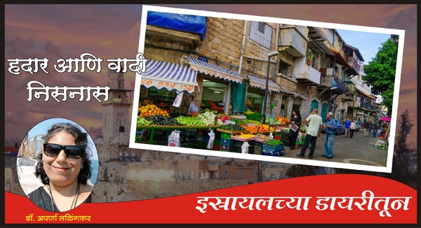 जेव्हा आपण कोणत्याही नवीन शहरात जातो, तेव्हा आपल्याला आवश्यक गोष्टी जिथे मिळतात ती ठिकाणे आणि तिथे कसे जायचे हे माहीत होणे म्हणजे शहराची ओळख होण्यास सुरुवात होणे. पण ही अशी ओळख होतानाच तुम्हाला जेव्हा त्या शहराचे वैशिष्टय - कोणत्या वस्तू कुठे चांगल्या मिळतात, कोणत्या वस्तू कुठे स्वस्तात मिळतात हे समजायला लागले की तुम्ही त्या शहरातलेच एक बनून जाण्याच्या प्रक्रियेला सुरुवात होते. पुणेकरांना कशी तुळशीबाग आणि रविवार पेठ ओळखीची आहे, तसेच हैफामध्ये राहणाऱ्यांना हदार. हदार हा अरब शब्द आहे. सुरुवातीच्या दिवसात भारतीय वस्तू/पदार्थ/धान्य कुठे मिळतील? असे विचारले, तेव्हा एका सुरात उत्तर मिळाले - 'ईस्ट-एन्ड-वेस्ट, हदार'. तेव्हापासून हदारला जाण्याचे ठरवलेले होते, पण वेळच मिळत नव्हता. शेवटी बँकेचे खाते उघडायला बँकेच्या मुख्य शाखेत जावे लागले, तेव्हा हदारला जाणे झाले. हैफामध्ये इतर कुठेही न दिसलेले गरीब लोक मला इथे दिसले. एक-दोघांना तर शेकल मागताना पाहिले. पण आपल्याकडच्यासारखी गरिबी इथे नाही. इस्रायलमध्ये सरकारकडून सोशल वेलफेअर फंडाच्या माध्यमातून 60च्या पुढे असलेल्यांना, काही डिसेबिलिटी असलेल्यांना पेन्शन मिळते. हदारमधील मुख्य रस्त्यावरून अगदी सहजच फेरफटका मारत असताना अचानक एका रस्त्याच्या सुरुवातीलाच 'ईस्ट-एन्ड-वेस्ट'चे दर्शन झाले. आत गेल्यावर सम्राट आटा, बेसन, तांदळाची पिठी, हल्दीरामचे पॅकेटस, चकल्या, शेव, घी, लोणची, लिज्जत पापड, उदबत्ती, सोसायटी चहा अशा सगळयाच वस्तू दिसल्या आणि मन एकदम हरखून गेले. पटकन तीन-चार वस्तू घेतल्या आणि पैसे देण्यासाठी काउंटरला गेले. तिथे जवळच मला श्रीगणेशाची अतिशय सुबक मूर्ती दिसली. म्हणून काउंटरवरच्या माणसाला मूर्तीची किंमत विचारली, तर म्हणाला, ''ही मूर्ती विकण्यासाठी नाही.'' 'ईस्ट-एन्ड-वेस्ट'मध्ये भारतीय आणि चिनी पदार्थ/वस्तू मिळतात. मग मी माझा मोर्चा हर्टझल स्ट्रीटकडे वळवला. सगळीकडे दुकानांत सेल वगैरे लागलेले दिसले. त्यांच्या नवीन वर्षाचा सण अगदी तोंडावर होता. हर्टझल स्ट्रीट म्हणजे हैफामधील लक्ष्मी रोड. सगळी विविध कपडयांची दुकाने, ड्रायफ्रूट्सची दुकाने, हॅट्स, फर्निचर, ऍन्टीक्स इत्यादींची दुकाने, हुक्का पार्लर्स-कसीनो, छोटी-मोठी रेस्टॉरंट्स, कॅफे, इलेक्ट्रिकच्या वस्तूंची दुकाने, दागिने आणि बरेच काही या हर्टझल स्ट्रीटवर आहे.