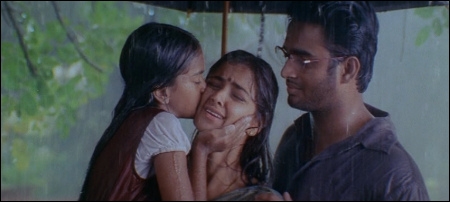 या दोन सशक्त भूमिकांत, दुय्यम असूनही अतिशय महत्त्वाची भूमिका आहे ती इंद्राची. लहान वयात दुसऱ्याच्या मुलीला दत्तक घेण्याचा निर्णय ती घेते. थिरुचेलवन मुलीसाठी आपल्याशी लग्न करायला तयार झाला आहे हे माहीत असूनही त्या मुलीला आपली मानते. अमुधा आपल्या जन्मदात्रीला भेटली, तर कदाचित आपल्यापासून दूर जाईल याची तिला भीती आहे, तरीही स्वतःचा जीव धोक्यात टाकून ती आई-मुलीची भेट घडवून आणते. सिमरन ही भूमिका अक्षरश: जगली आहे. तसा हा चित्रपट आई आणि मुलीच्या नात्याचा, पण या चित्रपटातील वडील (माधवन) आणि मुलीचा बंधसुद्धा अनोखा आहे. इंजीनिअर असलेला थिरुचेलवन लेखक होतो, त्याचे कारण असते ही मुलगी. तिला पाहूनच त्याला आपली पहिली कथा सुचते. केवळ तिला दत्तक घेता यावे म्हणून तो लग्नाला तयार होतो. तिच्या जन्माचे सत्यही तोच सांगतो. तिला सावरायला वेळ देतो. अमुधा जेव्हा त्यांच्याशी उर्मट वागते, तेव्हाही तो तिला समजून घेतो. स्वतःचा जीव धोक्यात घालून तिच्यासाठी श्रीलंकेला जाण्यास तयार होतो. कदाचित हे एक कारण असेल, ज्यामुळे अमुधा आपल्या खऱ्या वडिलांना भेटण्याचा आग्रह धरत नाही. तिच्यासाठी थिरुचेलवन हाच तिचा खरा पिता असतो.
