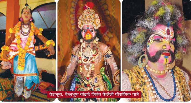 रात्री बारा-साडेबारा वाजल्यानंतर नाटकाची सुरुवात होते. सुरुवातीला पखवाज, तबला, पेटी यांचं वादन केलं जातं. त्यातून वातावरणनिर्मिती होते. सुरुवातीला संकासूर हे विनोदी पात्र प्रवेश करतं. गणपती नर्तन करतो. सरस्वती प्रकट होते. हे सारं विशिष्ट पद्धतीने सादर होत असतं. त्यानंतर त्या आख्यान विषयातला राजा दाखल होतो. पौराणिक कथा अनेकांना माहीत असतात, पण नाटकात पात्राला साजेशी वेशभूषा करून त्या कथा जिवंत केल्या जातात. सूत्रधाराने सांगितल्यानुसार आपापल्या भूमिकांची वेशभूषा प्रत्येक कलाकार स्वत: करत असतो, किंबहुना प्रत्येक कलाकार स्वत: सादर करणार असलेल्या भूमिकांसाठी, सजावटीसाठी आवश्यक असलेले रंग, केशभूषा यासाठीची सर्व साधनं स्वत:च बाळगत असतो. नाटक करायच्या ठिकाणी दाखल झाल्यानंतर प्रत्यक्ष नाटक सुरू होण्यापूर्वी तास-दीड तासांमध्ये त्यांची वेशभूषा पूर्ण होते. काही वेळा एकाच कलाकाराला अनेक भूमिका निभावाव्या लागतात. अशा वेळी तशीही त्याची तयारी असते. रावणाची भूमिका करायची, तर तो दशग्रंथी ब्राह्मण होता हे लक्षात ठेवलं पाहिजे. दुर्योधन उभा करताना लालसेमुळे तो किती टोकाला जाऊ शकतो, हे साकारलं पाहिजे. स्त्री भूमिका करतानाच नारदाची, विष्णूची भूमिकाही निभावावी लागते. त्याची तयारी असते.