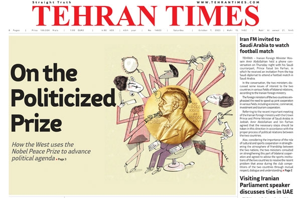 इराणमधील ‘तेहरान टाइम्स’ या वृत्तपत्राने नोबेल पारितोषिकावर जहरी टीका केली