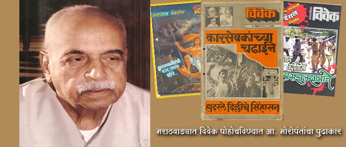 ज्येष्ठ संघप्रचारक मोरोपंत पिंगळे यांचीही मला आठवण होते. राष्ट्रीय विचारांच्या प्रकाशन संस्था अधिक बलशाली झाल्या पाहिजेत, विकसित झाल्या पाहिजेत हे मोरोपंत कटाक्षाने पाहत असत. संघबंदीनंतर मुंबईतून साप्ताहिक विवेक प्रकाशित होऊ लागला, तेव्हा प्रखर विचार आणि ठाम भूमिका घेणारे साप्ताहिक महाराष्ट्रात सर्वदूर पोहोचले पाहिजे, असा प्रयत्न सुरू झाला. अर्थात, यात मोरोपंतांचा पुढाकार होता. मुंबई-पुण्यापुरता मर्यादित असणारा सा. विवेक मराठवाड्यात पोहोचविण्यासाठी मोरोपंतांनी योजना केली आणि काका दामलेंना सोबत घेऊन छ. संभाजीनगरचा (औरंगाबाद) प्रवास केला. मुंबईबाहेर विस्तार करायचा, तर नव्या ठिकाणी सर्वच व्यवस्था उभ्या कराव्या लागणार होत्या. काका दामलेंनी कोणकोणत्या गोष्टींची आवश्यकता आहे आणि कशा प्रकारचे मनुष्यबळ आवश्यक असेल याची कल्पना मोरोपंतांना दिली होती. मराठवाडा निझाम राजवटीतून मुक्त झाला, तरी अजूनही राष्ट्रीय मानसिकता निर्माण झाली नव्हती. त्यामुळे छ. संभाजीनगर केंद्र करून मराठवाडा आवृत्ती प्रकाशित करण्याचे नक्की झाले. सा. विवेकची मराठवाडा आवृत्ती सुरू होईपर्यंत मोरोपंतांनी अनेक वेळा सा. विवेकसाठी छ. संभाजीनगरला प्रवास केला. योग्य कार्यकर्त्यांनी निवड केली. जयवंतराव देशपांडे, भाऊसाहेब जहागीरदार, हरिभाऊ बागडे असे तरुण स्वयंसेवक मोरोपंतांनी निवडून काढले. भाऊसाहेब जहागीरदार यांच्याकडे पालक म्हणून जबाबदारी दिली, तर हरिभाऊ बागडे यांच्याकडे विक्री, जाहिरात इत्यादी विषयांची जबाबदारी दिली आणि 23 डिसेंबर 1955 रोजी सा. विवेकची मराठवाडा आवृत्ती सुरू झाली. मुंबईहून आठ पाने छापून पाठविली जात. छ. संभाजीनगर येथे चार पाने छापली जात. असा एकूण बारा पानांचा सा. विवेक मराठवाड्यात प्रकाशित होऊ लागला. मराठवाड्यात सुरू झालेले संघविचारांचे हे पहिलेच नियतकालिक होते.”