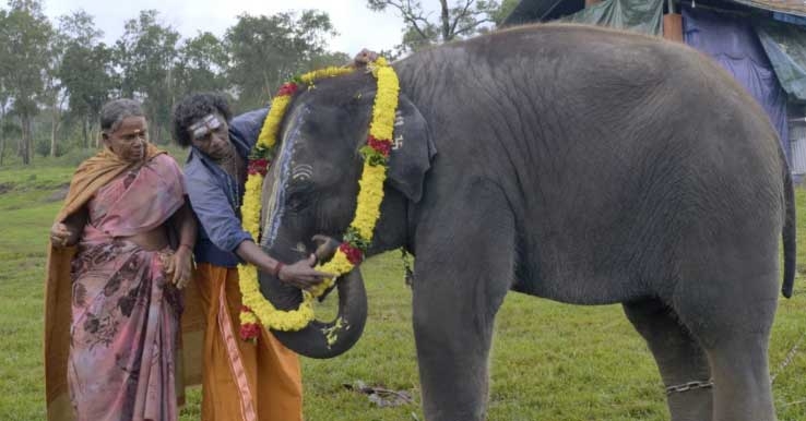 ‘द एलिफंट व्हिस्पर्स’ हा एकाच वेळी माहितीपट आणि चरित्रात्मक लघु(कथा)पट आहे. निसर्ग आणि माणूस यांचे तादात्म्य दाखवतानाच या दोघांमध्ये सीमारेषा असणे किती महत्त्वाचे आहे, हेदेखील अधोरेखित करतो. अचित जैन, गुनीत मोंगा निर्मित आणि कार्तिकी गोन्साल्विस दिग्दर्शित हा सुमारे 41 मिनिटांचा लघुपट तामिळनाडूच्या मुदुमलाई व्याघ्र प्रकल्पातील एका आदिवासी दांपत्यांची कथा सांगतो. महत्त्वाचे म्हणजे ही कथा ज्या दांपत्यांची आहे, ते मुळात दांपत्यच नव्हते, तर सहकारी होते. पण अनाथ ‘रघू’ (हत्ती) त्यांच्या आयुष्यात आल्यानंतर, वयाची साठी-पासष्टी ओलांडलेल्या या ‘एकल’ बोमन आणि बेल्ली यांना कळू लागते की, आता रघूची देखभाल हेच त्यांचे विहित आहे. आणि त्याची काळजी घेण्यासाठी आपल्याला सदैव सोबतच राहावे लागणार, तेव्हा नातवंडांच्या आणि वाड्यावरील लोकांच्या साक्षीने ते वयाच्या उत्तरायणात एकमेकांशी लग्न करतात. निसर्ग माणसांना जवळ आणतो याचे हे एक वेगळेच उदाहरण या निमित्ताने आपल्यासमोर येते. पुढे रघू मोठा झाल्यानंतर त्याला दुसरीकडे वनविभागाकडे सोपवल्यानंतर बोमन अणि बेल्ली यांच्याकडे ‘अम्मू’ (हत्तीण) सुपुर्द करण्यात येते.