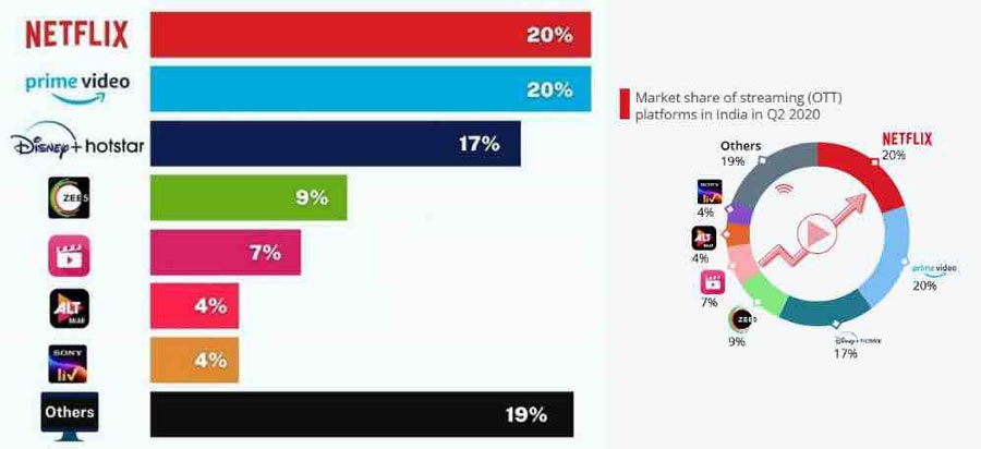 केवळ लॉकडाउनमध्ये थिएटरात जाऊन सिनेमे पाहणं शक्य नाही, म्हणून घरीच सिनेमे पाहू.. यांतून सुरुवात होऊन त्या ठरावीक ओटीटीसाठी तयार होणारे सिनेमे आणि वेबसिरीज पाहू, इथपर्यंतचा प्रवास अवघ्या एका वर्षात झाला. सुरुवातीला केवळ प्राइम विडिओ, क्वचित नेटफ्लिक्स असणार्या भारतीय ओटीटी मार्केटमध्ये सध्या जवळपास 40 हिंदी/इंग्लिश, प्रादेशिक प्लॅटफॉर्म्स आहेत. त्यातही नेटफ्लिक्स आणि प्राइम आघाडीवर आहेत.