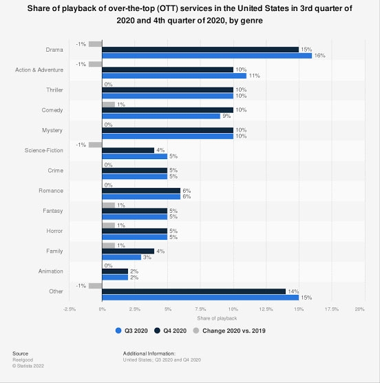 मागच्या चार वर्षांत कुटुंबासह एकत्र पाहता येतील असे शोज पाहण्यात केवळ 1 टक्का वाढ झालीय, तर हॉरर, थ्रिलर, साय फाय, ड्रामा पाहण्यात प्रचंड वाढ झालीय.