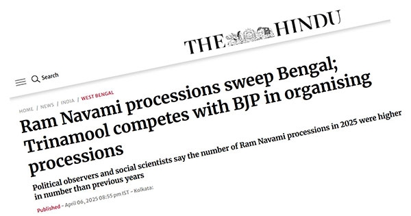 मुर्शिदाबाद, हावडा, माल्दा, शिवपुर, रिषडा, हुगळी ही व आणखी काही शहरे रामनवमीच्या निमित्ताने हिंसाचाराची केंद्रे बनल्याचे आजवर दिसत होते. तृणमूलसमर्थक गुंडांना आवर घालण्याऐवजी भाजपाला दोष देण्याची तृणमूलची पद्धत नित्य परिचयाची झाली होती. यावेळी मात्र भाजपा, रा. स्व. संघ आणि विश्व हिंदू परिषद या सर्वांच्या पुढाकारामुळे हिंदू निर्भयपणे पुढे आले आणि एकट्या कोलकात्यामध्ये ऐंशीपेक्षा अधिक मिरवणुका काढण्यात आल्या. बंगालच्या तेवीस जिल्ह्यांमध्ये दीड कोटी नागरीक मिरवणुकांच्या निमित्ताने रस्त्यावर येतील, असे उद्दिष्ट राज्य भाजपाने ठेवले होते. रस्त्यांवर ठिकठिकाणी भगव्या पताका आणि भगवे ध्वज दिसण्याचे अतिशय उत्साहाचे आणि आश्वासक चित्र बंगालमध्ये प्रथमच दिसत होते. ममता सरकारच्या गुंडांच्या दहशतीला न जुमानता मोठ्या प्रमाणावर रस्त्यावर येण्याचे धैर्य तेथील हिंदूंनी दाखवले. अशा प्रकारे मोठीच क्रांती बंगालमध्ये घडली आहे. या क्रांतीची धग तृणमूल काँग्रेसला एवढ्या तीव्रतेने जाणवली की आपण रामनवमी शोभायात्रांना विरोध करत आलो आहोत, हे विसरून त्यांनी स्वत:च भगवी वस्त्रे लेवून मिरवणुका काढल्या. एका मिरवणुकीत तर त्यांनी श्रीरामाला चक्क अयोध्येच्या रामलल्लाच्या स्वरूपात दाखवले. ‘मिरवणुका काढण्यात तृणमूल काँग्रेसने भाजपाशी स्पर्धा केली’ अशा मथळ्याची बातमी ‘द हिंदू’ने दिली. अर्थात बंगालचे हिंदू आता असे वेषधारी बगुलाभक्त नीट ओळखतीलच. सर्वांवर कडी केली ती ‘रामनवमी शोभायात्रा म्हणजे भाजपाचे दंगलीचे षडयंत्र’ असे म्हणणार्‍या ममता यांनी. सर्व मिरवणुका शांततेत पार पाडल्याबद्दल बंगालच्या जनतेचे अभिनंदन करणारी पोस्ट त्यांनी ‘एक्स’वर केली. वर ‘रामनवमी साजरी करणे ही भाजपाची मक्तेदारी नाही’, अशी मखलाशी त्यांच्या पक्षाला करावी लागली. एवढे करून खुद्द मुख्यमंत्री या उत्सवात सामील झाल्याच नाहीत.