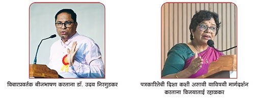 झी 24 तासचे माजी मुख्य संपादक डॉ. उदय निरगुडकर यांच्या हस्ते संमेलनाचे उद्घाटन झाले. त्यांनी माध्यम क्षेत्रातील आव्हाने, बदलत जाणारे प्रवाह याबाबत मत व्यक्त केले. महिला पत्रकारांसाठी असणारी आव्हाने विशद करताना,‘स्वतःची शैली विकसित करत आपण माध्यमात वावरताना स्वतःचा प्रेक्षक वर्ग सुद्धा तयार करायला हवा. स्टोरी टेलर या भूमिकेतून बाहेर पडत स्टोरी चेंजर व्हा’, असा मौलिक सल्ला त्यांनी महिला माध्यमकर्मींना दिला. स्वतःच्या क्षमता ओळखून आत्मविश्वासाने या क्षेत्रात वावरा असेही ते म्हणाले. कृत्रिम बुद्धिमत्ता (एआय तज्ज्ञ) आणि महर्षी कर्वे स्त्रीशिक्षण संस्थेतील प्राध्यापिका डॉ. प्रांजली देशपांडे यांनी ‘एआय’मधील संधी आणि गरज माध्यम क्षेत्राला पूरक असून आपण त्यातील सकारात्मकता वेचायला हवी, अशी अपेक्षा व्यक्त केली ‘एआय’मधील संभाव्य धोके लक्षात घेऊन चॅटजीपीटीसारखी टूल्स वापरायला हवीत. तंत्रज्ञानात होणारे बदल स्वीकारत आपण त्याचा योग्य उपयोग करून घ्यायला हवा. मात्र ते वापरण्याचे प्रशिक्षणसुद्धा आवश्यक असल्याची गरज त्यांनी अधोरेखित केली.