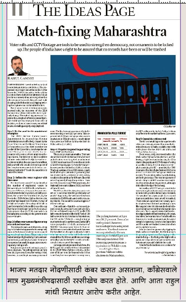 हरियाणाची निवडणूक हरल्यावर त्यांनी जणू ’ब्रह्मास्त्र’ बाहेर काढल्यासारखे निवडणूक आयोगाला लक्ष्य करण्यास सुरुवात केली. महाराष्ट्रातील लाजिरवाणा पराभव वर्मी लागल्यावर त्यांनी आता महाराष्ट्रातील निवडणुका ’रिग’ झाल्याचा आरोप करून लोकांचा निवडणूक प्रक्रियेवरील विश्वास उडवण्यासाठी प्रयत्न सुरू केले आहेत. राहुल यांच्या आरोपांना देवेंद्र फडणवीसांनी मुद्देसूद उत्तर दिलेच आहे तसेच निवडणूक आयोगानेही ते सर्व आरोप फेटाळून लावले आहेत. विशेष म्हणजे ’इंडियन एक्सप्रेस’ या सरकारविरोधी भूमिका घेणार्या वर्तमानपत्राने सुद्धा राहुल यांचा आरोप तथ्यहीन असल्याचे म्हटले आहे.