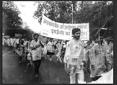 25-26 जून 1975 च्या मध्यरात्री आणीबाणी जाहीर झाली, रा. स्व. संघावर बंदी आली, पण अखिल भारतीय विद्यार्थी परिषदेवर बंदी नव्हती. त्यामुळे आणीबाणीच्या काळात बंदी नसलेली विद्यार्थी परिषद हे अनेक गोष्टींसाठी अनौपचारिक चॅनल ठरले. विद्यार्थी परिषदेच्या बॅनरखाली एकत्र येण्याची, प्रवास करण्याची, काही छापून घेण्याची मोकळीक मिळाली. तिचा योग्य तो उपयोग करून घेतला गेला. ठिकठिकाणी तशा बर्याच योजना-युक्त्या केल्या आहेत पण महाराष्ट्रातली दोन उदाहरणे देतो.