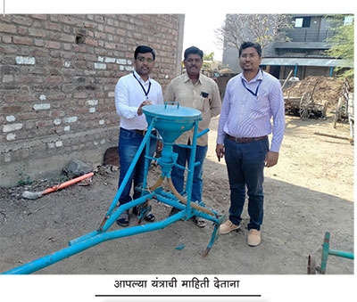 नामदेव यांनी गावी परतातच स्वतःच्या शेतात प्रयोग सुरू केले. स्वतःचे हात मातीत घालून प्रत्यक्ष अनुभव घ्यायला सुरूवात केली. शेतीची योग्य मशागत करूनही पेरणी यंत्रात अप्रगत आहोत, याची जाणीव त्यांना झाली. पुढे बियाणांची पेरणी करण्याकरिता यंत्र तयार करणे आवश्यक वाटू लागले. यासाठी त्यांनी आपल्या निरीक्षणाआधारे टाकाऊ वस्तूपासून अत्यंत कमी खर्चात पेरणी व खत यंत्र तयार केले. नामदेव सांगतात,‘2016 सालची गोष्ट असावी. मी मुंबईतली नोकरी सोडून गावी परतल्याने माझ्यापुढे शेती हाच एकमेव मार्ग होता. 25 एकरांवर कपाशीची लागवड केली होती. कपाशीला खते टाकण्यासाठी मजुरीचा खर्च वाढला होता. मला हे परवडणारे नव्हते. त्यानंतर खत पेरणी यंत्र बैलाच्या सहाय्याने ओढता येईल, अशा पद्धतीने यंत्र तयार करण्याचा निर्णय घेतला. प्रथम यंत्राचे डिझायन केले. यानंतर मी जवळच्या फॅब्रिकेटरकडे गेलो. तिथे काही वस्तू घेतल्या. मुख्यतः घरगुती टाकाऊ वस्तूंचा अधिक वापर केला. दोन समान आकाराचे सहा फूट लोखंडी पाईप व एक प्लास्टिक चाळणी घेऊन खत पेरणी यंत्र तयार केले. हे यंत्र बैलाच्या साहाय्याने चालते. दिवसाला सहा एकर खत पेरणी होते. हे खत कपाशीच्या मुळाजवळ (4 ते 5 इंच) पडते. यामुळे पिकाला योग्य खताची मात्रा मिळते. पाऊस कमी झाला तरी सरीमुळे जमिनीचा ओलावा टिकून राहतो. परिणामी, कपाशीचे उत्पादन वाढण्यास मदत होते. या पेरणीसाठी फक्त सहाशे रूपये खर्च होतो. ही पेरणी जर मजुरामार्फत करायची झाली तर एका मजुराला 50 किलो खतासाठी 300 रुपये (अंदाजित) मजुरी द्यावी लागते. सहा एकरासाठी 3006 = 1800 रुपये मजुरीचा खर्च येतो. एकूणच खत पेरणीचे हे यंत्र शेतकर्‍यांना परवडणारे आहे.