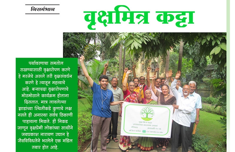 महानगरपालिकेने केलेली वृक्षलागवड ही प्रामुख्याने शोभेची झाडे, लवकर वाढणारी झाडे आणि फुले/फळे नसलेली झाडे ही लागवड होते. पण त्यात जैवविविधता नाही. 2021 साली माझ्या सोसायटीचा पुनर्विकास होणार हे नक्की होते आणि त्यामुळे तेथील काही झाडांना दुसरे घर शोधणे आवश्यक होते. पर्यावरणदिनाचे औचित्य साधून जून 2021 मध्ये संघाच्या स्वयंसेवकांनी मिळून आमच्या सोसायटीतील काही झाडांचे जयप्रकाश उद्यानात पुनर्रोपण केले. सुदैवाने बागेतील काही ज्येष्ठ मंडळीना हा उपक्रम आवडला आणि मग महिन्याच्या पहिल्या रविवारी वृक्षमित्र कट्ट्याच्या निमित्ताने वृक्षारोपण कार्यक्रम सुरू झाला.