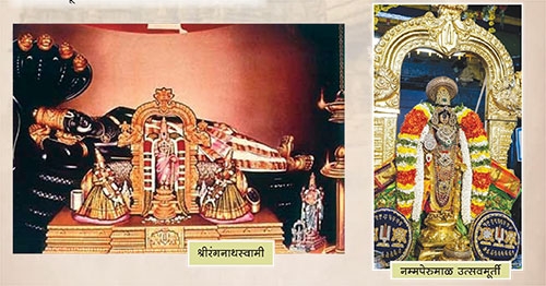 आम्ही ज्यावेळी वैकुंठ एकादशीला मंदिरात गेलो होतो त्यावेळी मंदिरातील उत्सवमूर्तीची मिरवणूक पाहिली होती. ही उत्सवमूर्ती नयनरम्य व अफलातून सुंदर आहे. या उत्सवमूर्तीला ’नम्म पेरूमाळ’ म्हणजे ’माझा पेरूमाळ’ म्हणतात. या दिवशी नम्म पेरूमाळाचे दर्शन घेण्याला अपार महत्त्व आहे. दक्षिणेच्या मंदिरात नेहमीच मुख्य मूर्ती म्हणजेच मूलवरम व त्या मूर्तीची वेगळी उत्सवमूर्ती असते. त्याशिवाय इतर मूर्तींच्याही उत्सवममूर्ती असतात. मूळ मूर्ती नेहमीच अचल असते. मात्र मंदिरात उत्सव साजरे करताना उत्सवमूर्तीची मिरवणूक काढली जाते, मूर्तीला नौकानयन घडवले जाते. भगवंताचे नुसते लाड केले जातात.