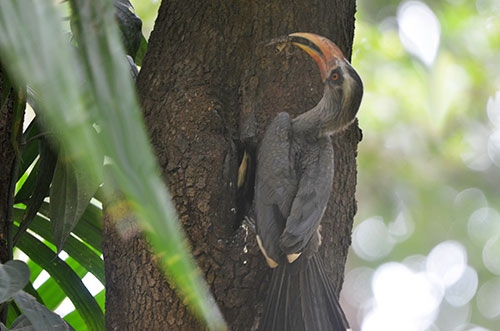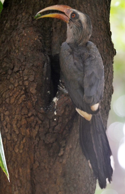 घरट्यांच्या पोकळीसाठी हॉर्नबिल पक्षी मोठा घेरा असलेल्या उंच झाडांना प्राधान्य देतो. तो जिवंत झाडांचा उपयोग करतो. क्वचित प्रसंगी मृत झाडेही अभ्यासकांनी नोंदवली आहेत. आम्ही पाहिलेल्या मलबार ग्रे हॉर्नबिलने कोकमाच्या झाडावर घरटे केलेली पोकळी जमिनीपासून सुमारे 10-12 फूट अंतरावर होती. हे घरटे काहीशा कमी उंचीवरील वाटले. या घरट्याच्या प्रवेशद्वाराची दिशा वायव्य होती. जी घरट्यात थेट येऊ शकणारा सूर्यप्रकाश कमी करण्यास मदत करणारी जाणवत होती. हे घरटे फळबागेत आणि काहीसे मानवी वस्तीजवळ होते. आम्हाला पिल्लांचे (स्क्वॅब) आवाज आणि घरट्यातील त्यांची हालचालही टिपता आली. नर अन्न घेऊन आल्यावर प्रथम जवळच्या झाडावर उतरत होता. घरट्याची सुरक्षितता सुनिश्चित करण्यासाठी काही वेळ आजूबाजूची पाहाणी करताना दिसला. आजूबाजूला कोणतेही भक्षक नाहीत याची खात्री केल्यानंतरच तो घरट्याच्या झाडावर परतत होता. विशेष म्हणजे, माणसांव्यतिरिक्त इतर प्राण्यांकडून प्रौढ मलबार राखी हॉर्नबिलची शिकार करणे दुर्मीळ असतानाही त्याने इथल्या मानवांना धोकादायक मानले नसावे. कारण आम्ही या घरट्यापासून जेमतेम 20 फूट अंतरावरून निरीक्षण करत असतानाही त्याने निर्भयपणे मादीला खायला दिले होते. महाराष्ट्र आणि गोव्यात आढळणारे हॉर्नबिल पक्षी धार्मिक श्रद्धेमुळे काहीसे संरक्षित असावेत. हिंदू पौराणिक कथेनुसार त्याला ‘रक्षक’ (भगवान विष्णूचा वाहक) पक्षी म्हणतात.