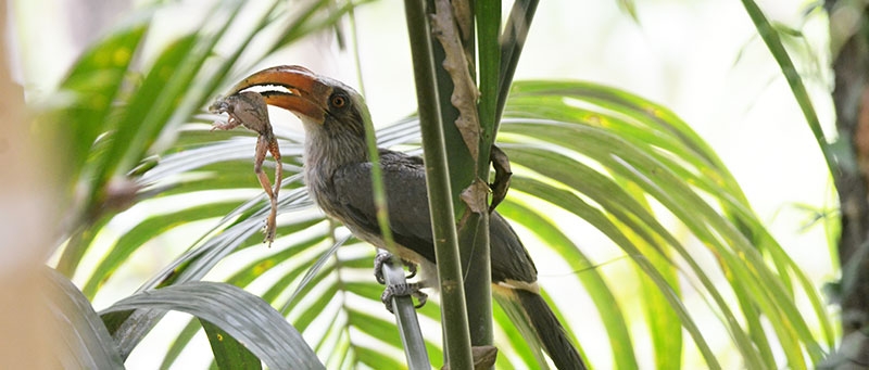 यावर्षी मे महिन्याच्या तिसर्‍या आठवड्यात तळकोकणात अवकाळी पावसाचे आगमन झाले. त्यावेळी आम्ही कुटुंबासह दोडामार्ग तालुक्यात होतो. ज्या गावी मुक्कामी होतो तिथे गाव हद्दीतून वाहणार्‍या धबधब्याचा प्रवाह बागायतीजवळून वाहात होता. दोडामार्ग तालुक्यात कोकणातील थोडेफार शब्दशः ‘जंगल’ म्हणावे असे क्षेत्र शिल्लक आहे. याच क्षेत्रात जागतिक अमूल्य जैवविविधता नांदते आहे. तिचे नीटसे मार्केटिंग केले तर हीच जैवविविधता इथल्या स्थानिकांना पर्यटनाच्या माध्यमातून भक्कम रोजगाराच्या संधी मिळवून देऊ शकते. त्यामुळे या भागात मुक्कामी असल्यावर काहीतरी छानसे पाहायला मिळणार आणि इथला मुक्काम संस्मरणीय होणार याची जाणीव होतीच. ती खरी ठरली. म्हणून कोकणातील दोडामार्ग तालुका हा जलद शहरीकरणापासून दूर ठेवण्याची नितांत आवश्यकता वाटते आहे. हॉर्नबिल हा उष्ण कटिबंधीय प्रदेशातील मोठ्या जंगली पक्ष्यांचा समूह आहे. हॉर्नबिलच्या जगातील 54 प्रजातींपैकी नऊ भारतात आढळतात. त्याच्या बहुतेक प्रजातींमध्ये मोठ्या वक्र चोची असतात. मलबार ग्रे हॉर्नबिल हा एक सुंदर आणि आकर्षक पक्षी आहे. ही हॉर्नबिल मधील सर्वात लहान प्रजाती आहे. तो पश्चिम घाट आणि दक्षिण भारतातील स्थानिक आहे. भारतातील सह्याद्रीच्या पश्चिम घाट पर्वतरांगांच्या वर्षावनांमध्ये महाराष्ट्रातील नाशिकपासून दक्षिणेकडील टेकड्यांपर्यंत आणि ओलसर पानझडीच्या जंगलांमध्ये त्याचे वास्तव्य आढळते. बहुतेकदा घरगुती बागांमध्येही आढळतो. मलबार राखी धनेशाची मोठी चमकदार नारिंगी चोच, बुबुळ सोनेरी तपकिरी असते. मादीची चोच तुलनेने लहान, फिकट रंगाची आणि तिचे बुबुळ गडद तपकिरी असते.